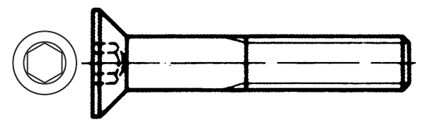 Skrue med indvendigt sekskantet greb og forsænket hoved.