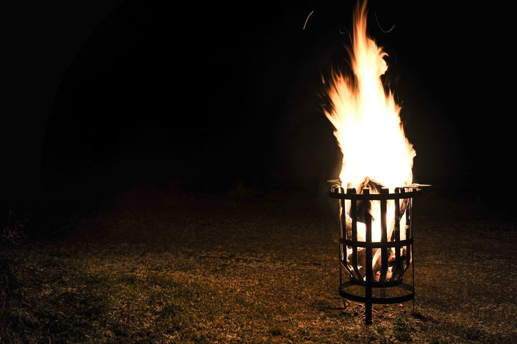 Ildkurv fra Västbo - en lille pejs, der er nem at flytte rundt på! Hyggeligt lys udenfor og kan også fungere som grill, når der skal grilles pølser.