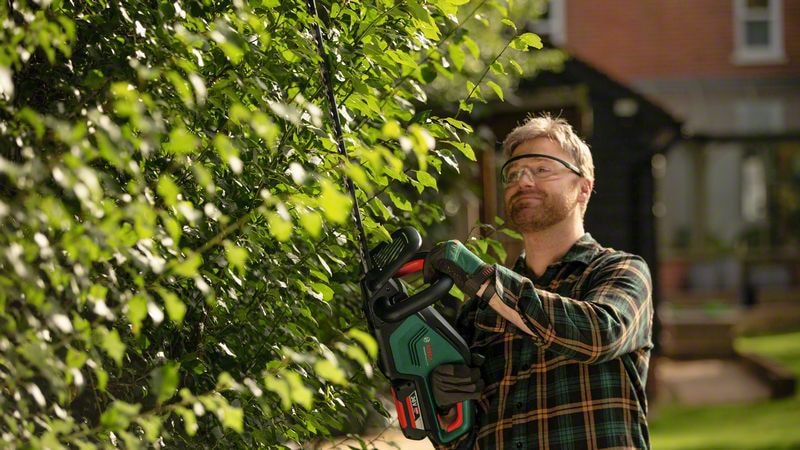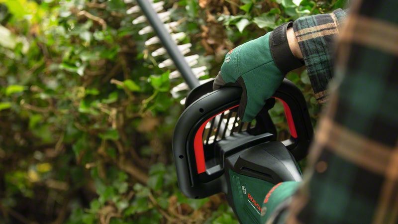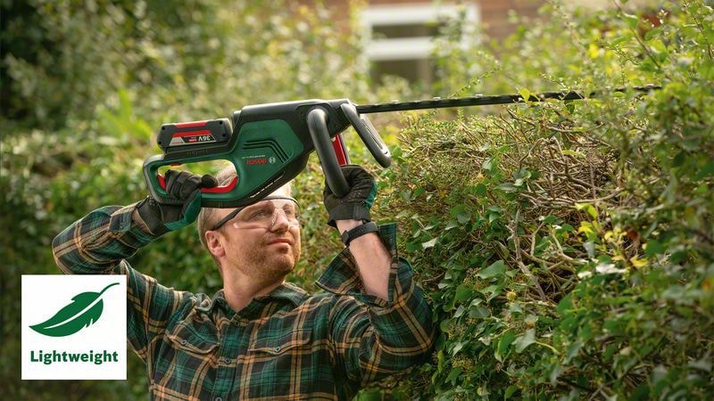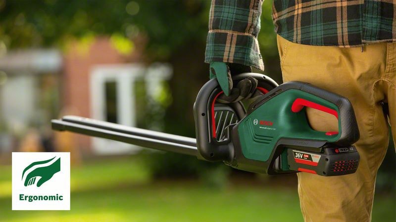 Den batteridrevne AdvancedHedgeCut 36V-65-28 klarer nemt tætte hække og buske. Den kulfri motor kombinerer kraftig ydelse med maksimal effektivitet, samtidig med at den lavere motorvarme sikrer, at maskinen holder længere. Da værktøjet er let at håndtere, skånes brugerens ryg, skuldre og håndled. Det Bosch-patenterede Anti-Blocking System sikrer, at klingen ikke går fast, så du kan klippe uafbrudt med mindre nedetid. Denne allround-maskine til klipning af alle hæktyper, inklusive tjørn og berberis, og klarer grene op til 28 mm. Værktøjet er en del af 36V POWER FOR ALL ALLIANCE-systemet. Ét batteri til alle 36V POWER FOR ALL-værktøjer.