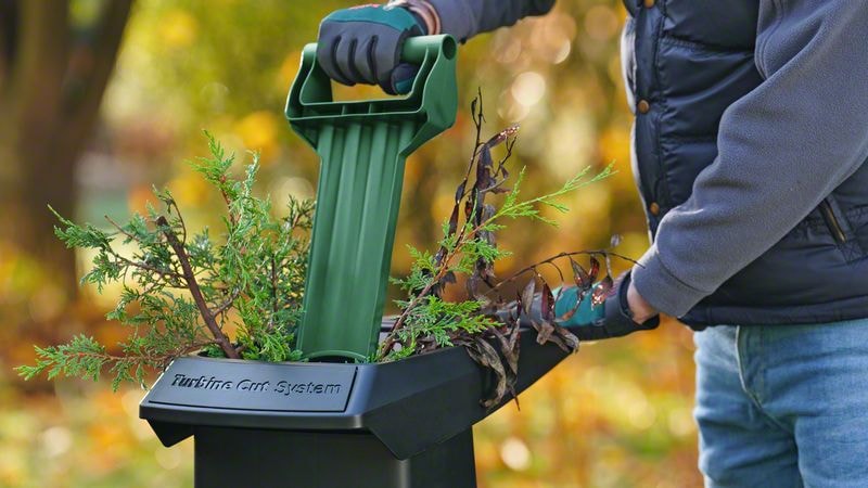 AXT 25 TC er en effektiv og imponerende støjsvag kompostkværn, som forvandler haveaffald til nærende afklip på ingen tid. En kraftig kulfri 2.500-W-induktionsmotor og den enestående Turbine-Cut-teknologi sikrer tilsammen, at du kan findele grene med en tykkelse på op til 45 mm, hårde, tornede buske og løvfældende haveaffald. Den automatiske tragt til hurtig indføring griber fat om grenene og trækker dem ind i skæresystemet, mens den praktiske stang gør det muligt at føre blødere materialer sikkert ind i kværnen, hvilket især er nyttigt ved håndtering af tornede grene. Opsamlingsboksen kan rumme hele 53 liter, hvilket betyder færre ture til kompostbunken. Det findelte afklip optager mindre plads i den grønne affaldsspand og bliver til fremragende kompost eller muld. Tragten kan opbevares i opsamlingsboksen, så kompostkværnen kun har en højde på 67 cm, hvilket sikrer nem og kompakt opbevaring.