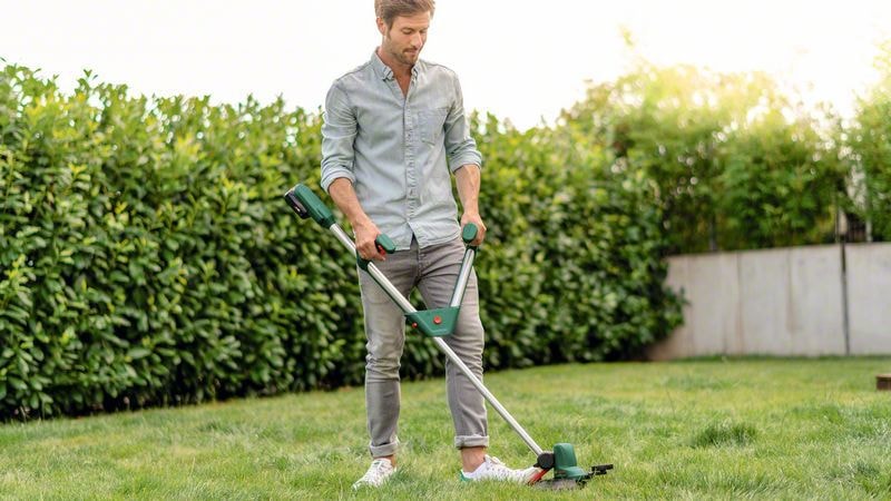 UniversalGrassCut 18V-26 er designet til problemfri vedligeholdelse af plænen og har et ergonomisk V-formet håndtag med teleskopisk højdejustering, som sikrer behagelig håndtering med en naturlig kropsholdning. IntelliFEED-funktionen klarer den automatiske fremføring af tråden og forhindrer stop, bøjning og stød. Det fleksible hoved roterer via en fodpedalknap og et drejegreb, som kan bruges til let at skifte fra trimning til kantskæring. Dens plantebeskytterbøjle beskytter varsomt blomsterne under arbejdet omkring blomsterbede. Når batteriet er helt opladet, kan trimmeren klippe kanterne på otte tennispladser i én arbejdsgang. Værktøjet er en del af POWER FOR ALL ALLIANCE. Ét batteri kan bruges til en lang række værktøjer fra forskellige producenter.