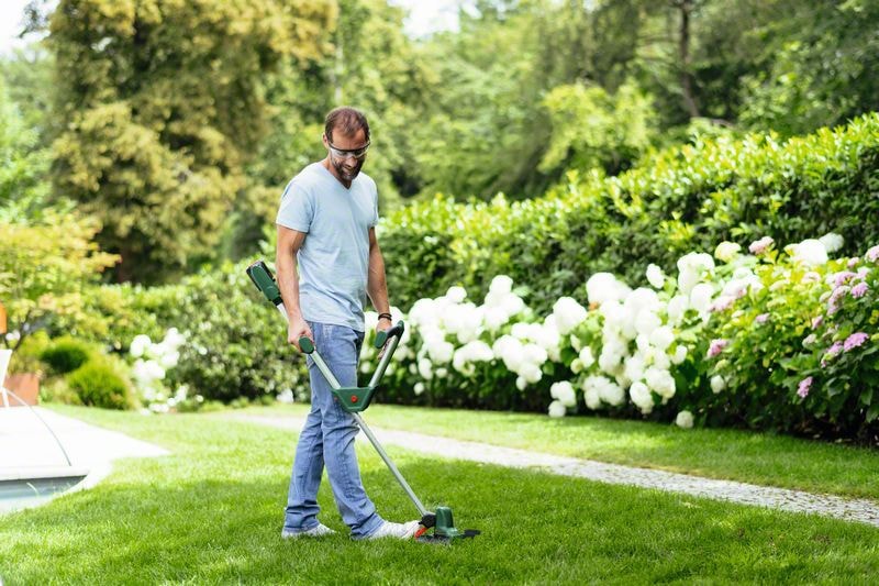 UniversalGrassCut 18V-260 er designet til problemfri vedligeholdelse af plænen og har et ergonomisk V-formet håndtag med teleskopisk højdejustering, som sikrer behagelig håndtering med en naturlig kropsholdning. IntelliFEED-funktionen klarer den automatiske fremføring af tråden og forhindrer stop, bøjning og stød. Det fleksible hoved roterer via en fodpedalknap og et drejegreb, som kan bruges til let at skifte fra trimning til kantskæring. Dens plantebeskytterbøjle beskytter varsomt blomsterne under arbejdet omkring blomsterbede. Når batteriet er helt opladet, kan trimmeren klippe kanterne på otte tennispladser i én arbejdsgang. Værktøjet er en del af POWER FOR ALL ALLIANCE. Ét batteri kan bruges til en lang række værktøjer fra forskellige producenter.