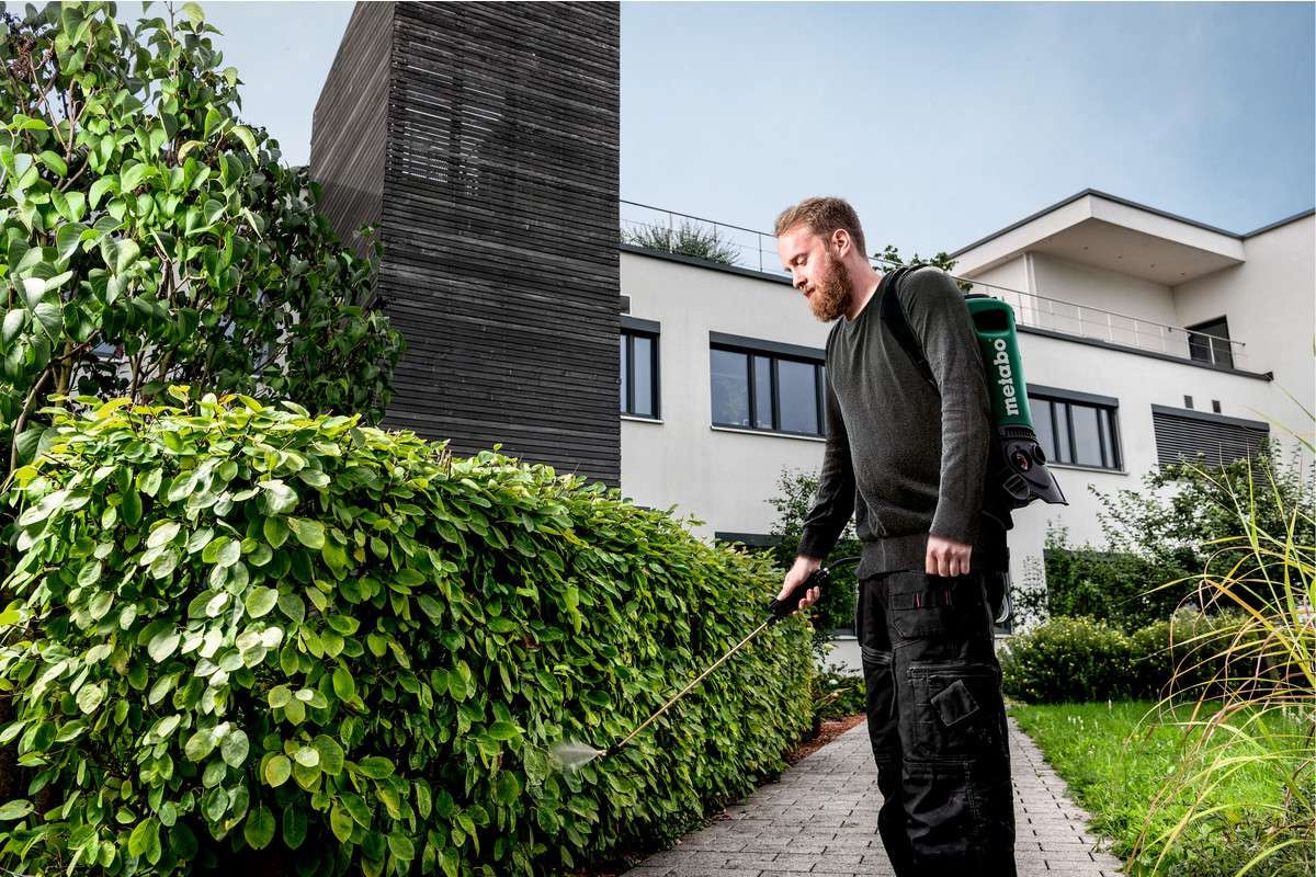 RSG 18 LTX 15 rygsprøjte 18V (solo) fra Metabo har desuden også reguleringsdyse for nemt, hurtigt skift mellem forstøvning og stråle, integreret filtersystem beskytter mod forurening samt stor åbning på tank, der gør tømning og rengøring nemt.