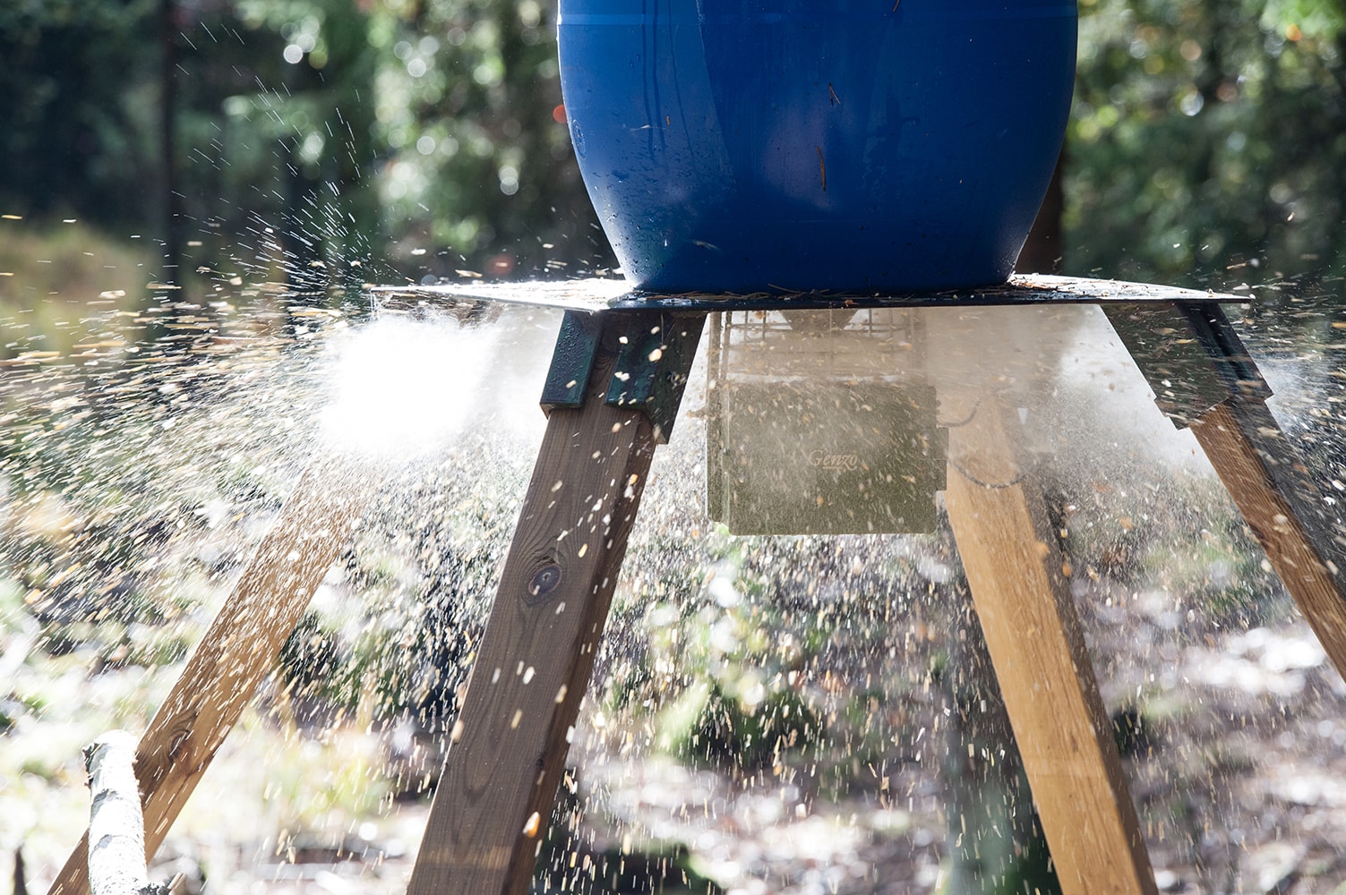 Regulerbar motoreffekt. Sprederen kan nemt fastgøres på en valgfri tønde. I tønden skruer du den fast via den medfølgende kegle, der sørger for, at foderet rammer sprederrotoren på korrekt vis, og der ikke forekommer spild.