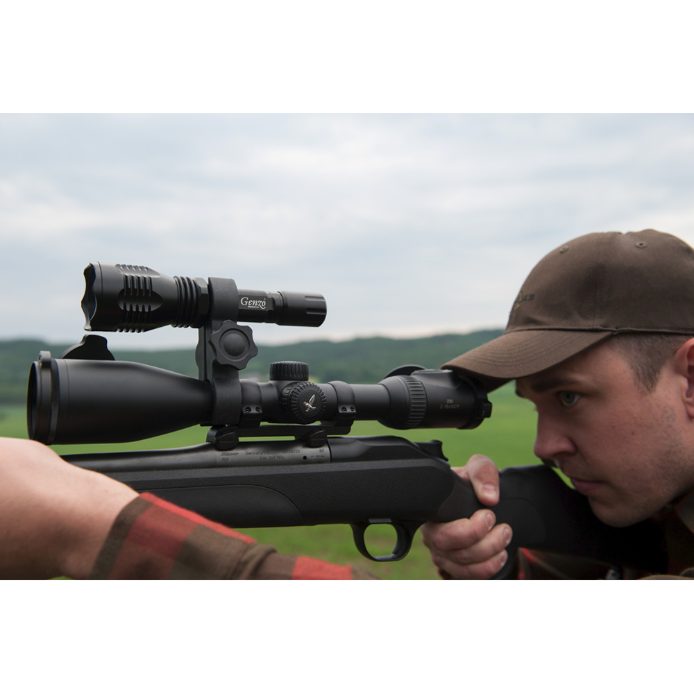 Lampebeslag, der passer til et kikkertsigte med 1" og 30 mm diameter samt kraftigere geværløb af typen halvautomatisk.