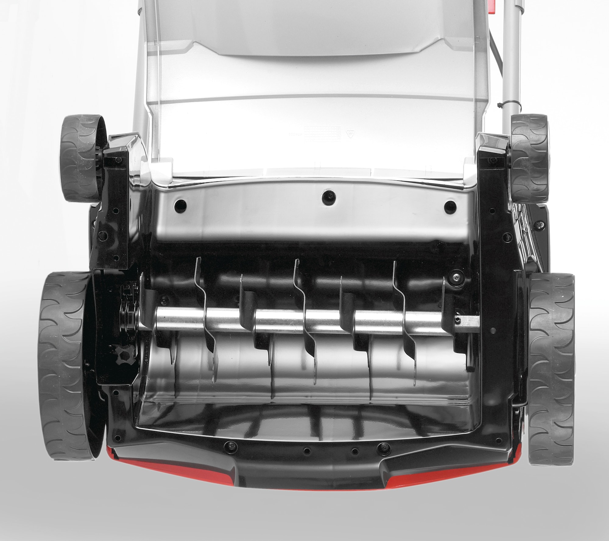 Byt med ett enkelt handgrepp, utan verktyg, mellan vertikalskärarvals och luftarvals. 38 P CombiCare passar perfekt för den större trädgården med ytor upp till 800 m2.