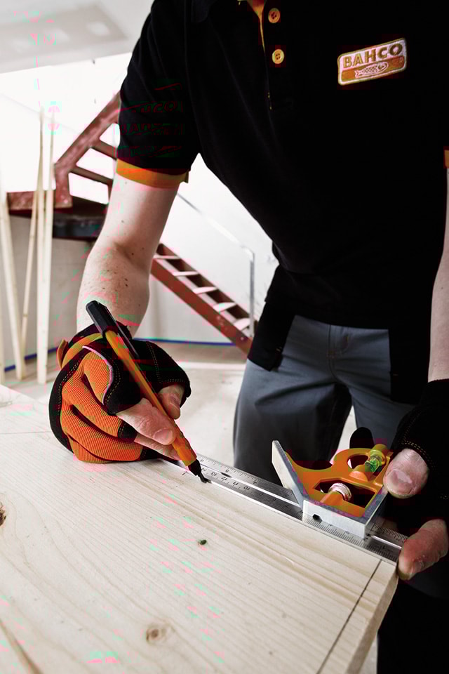 - Letanvendelig kombinationsvinkel med markeringer i både metrisk og tommemål