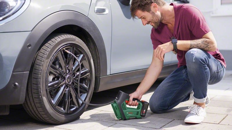 Det går som en leg: UniversalPump 18V er det eneste, du skal bruge, når det gælder hurtig oppumpning - op til 30 liter i minuttet - intuitiv og behagelig brug. Da værktøjet er batteridrevet, kan det bruges overalt til bil- og cykeldæk eller andre oppustelige genstande, og det er hurtigt at tage i brug takket være hastighedsknappen. Et oplyst manometer viser trykmålinger tydeligt: Det er praktisk under svage lysforhold. Når arbejdet er færdig, kan du opbevare alt tilbehør og slangen direkte foran på værktøjet. Værktøjet er en del af POWER FOR ALL ALLIANCE. Ét batteri kan bruges til en lang række værktøjer fra forskellige producenter.