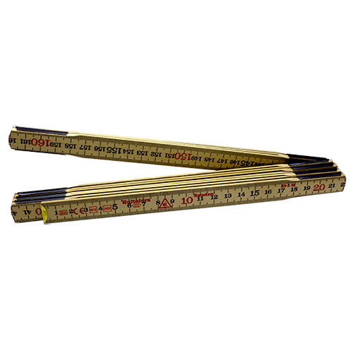 Traditionelt fremstillet af glasbirk med led af svensk stål, hvilket muliggør tynde stave og en smidig meterstok. Metrisk gradering i sort på begge sider med røde decimetersifre.