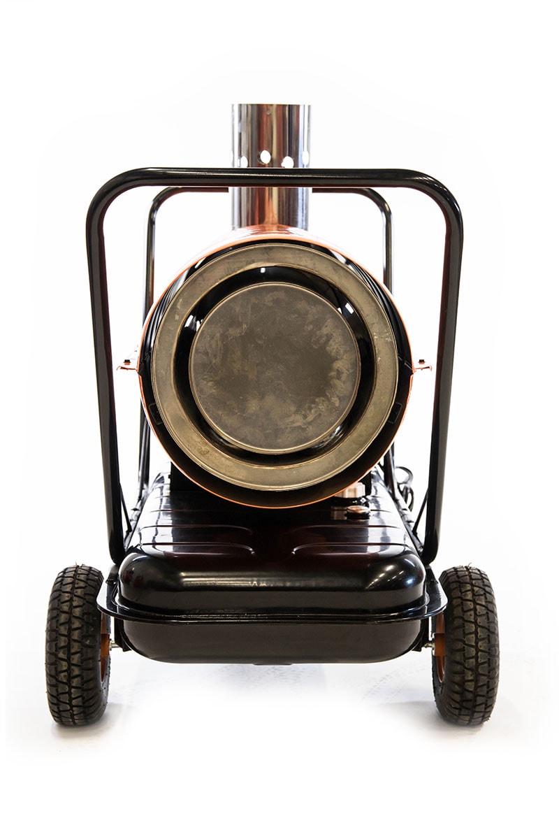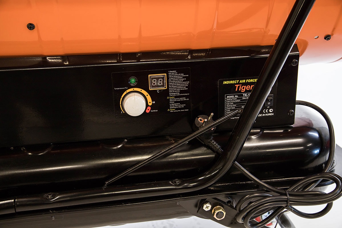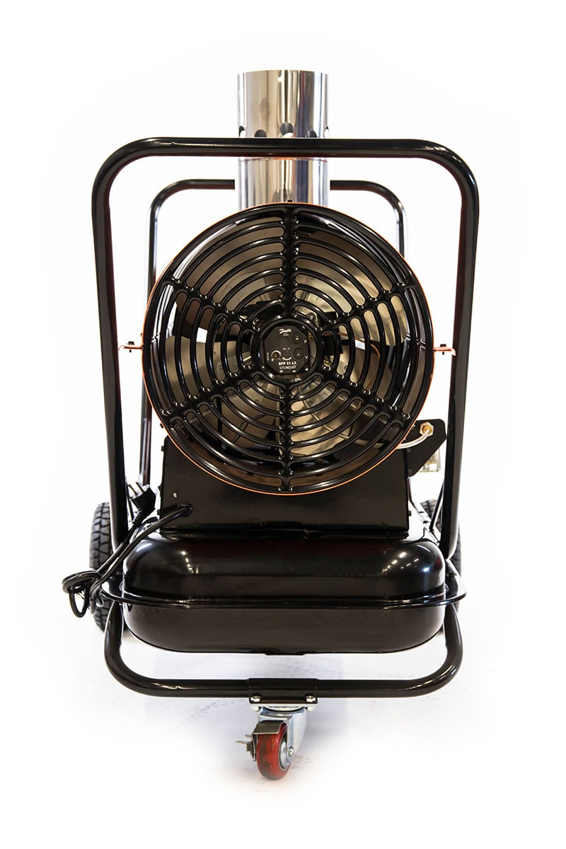 Mobil dieselkanon, TK-170ID, med skorsten drevet af dieselolie. Forbrændingskammer i rustfrit stål med automatisk køling og varmeveksler til adskillelse af udstødningsgasser og varm luft. Fotocensor til flammekontrol og automatisk brænderstyring. Sikkerhedstermostat og styreudstyr, udstyret med indbygget rumtermostat. Dieselkanon perfekt til tørring på byggepladser og til opvarmning af ejendomme, lagerbygninger, værksteder, garager, industribygninger, tilskudsvarme til tørrer m.m.