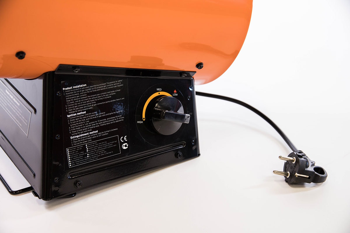 Gasdrevet varmekanon velegnet til opvarmning af mindre lokaler som garager, værksteder, varehuse m.m. Varmelegemet er meget fleksibelt og nemt at bære takket være håndtaget på toppen. Udstyret med indbygget brænder, sikkerhedstermostat og ventilator. Leveres komplet med reduceringsventil, slukkeventil og gasslange.