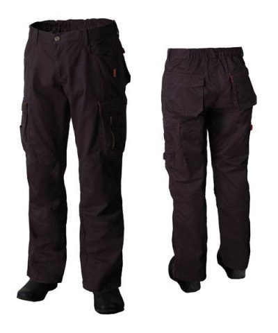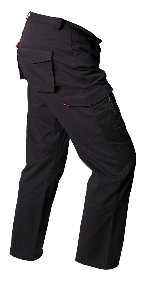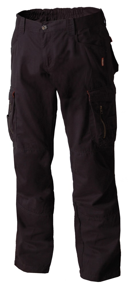 To bælgsyede baglommer med flap, der er orange på indersiden. To frontlommer med lomme. To dobbeltsyede benlommer med flap og lynlås, den ene sidelomme med knivlomme, den anden med blyantslommer.Produktspecifikationer