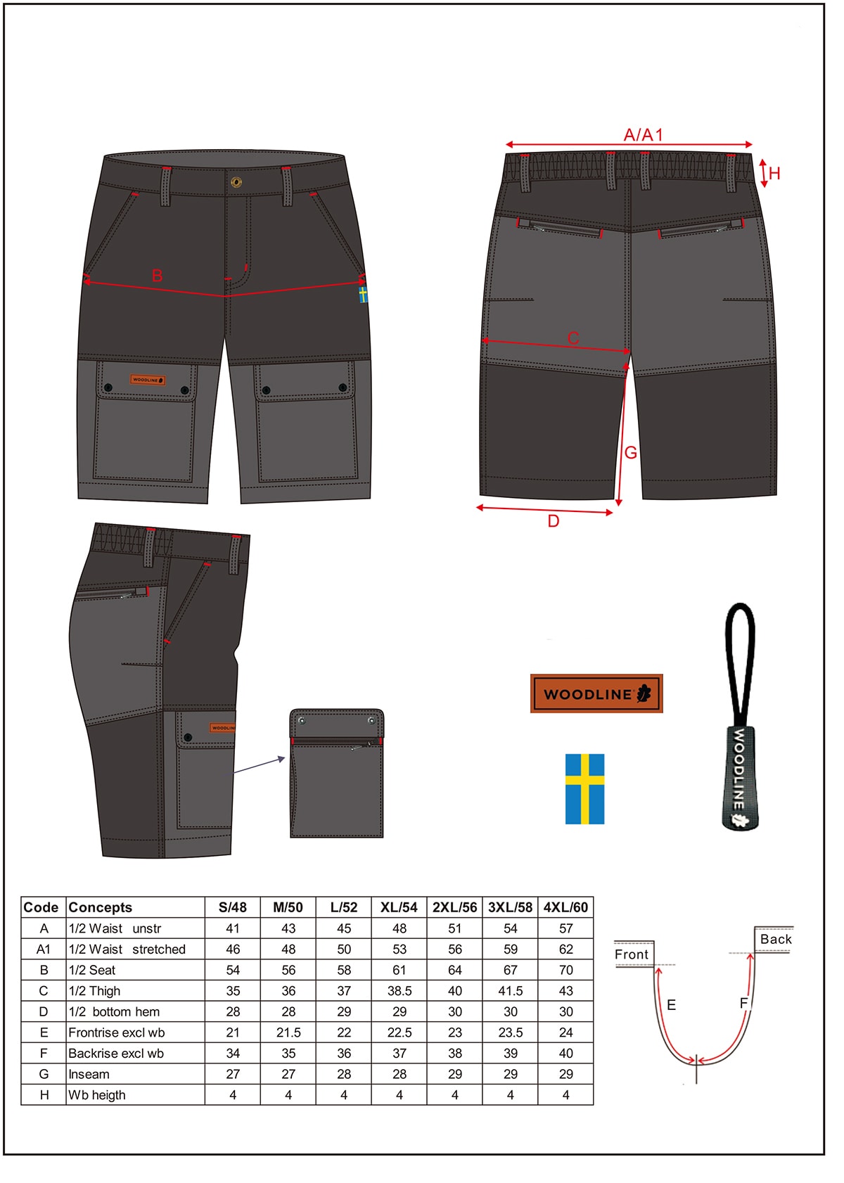 - Alle lynlåse på lommerne er forsynet med zipperpullers for nemt at åbne lynlåsen.