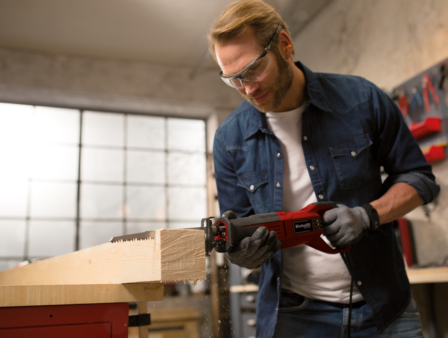 Du får her en kraftig bajonetsav fra Einhell med elektronisk slaghastighedsregulering for nem brugertilpasning.