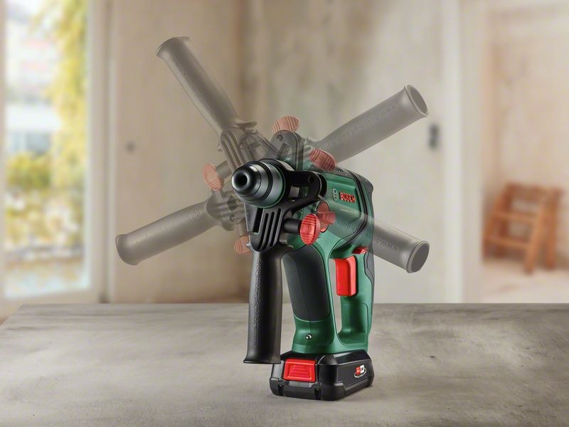 Dette kraftcenter gør det igen sjovt at bore takket være kombinationen af stor slagkraft, nem håndtering og fleksibilitet. Det er udstyret med en pneumatisk Bosch-slagmekanisme på 2,0 J, der er ideel til boring af huller op til ∅ 16 mm i beton med et SDS plus-bor. Den imponerende kraft kan også bruges til fjernelse af vægklinker og mejsling af kabelkanaler. Gør-det-selv-entusiaster vil sætte pris på den lette, kompakte hammerstørrelse, der gør arbejdet mindre trættende. Desuden sikrer vibrations- og rotationsstyringen, at værktøjet ryster mindre og er mere stabilt