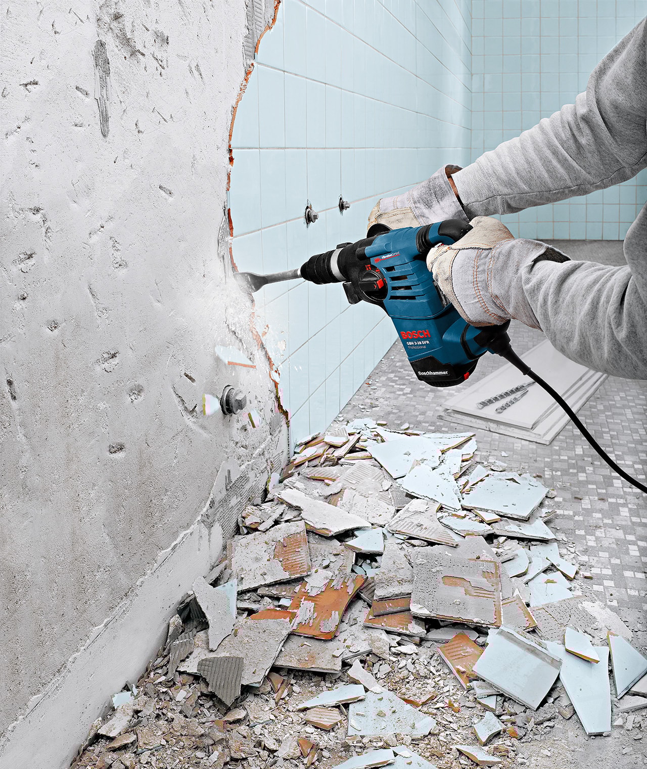 Bosch GBH 3-28 DFR er en slag boremaskine med højere borehastighed og 20 % højere mejseleffekt end andre borehamre i klassen. Maskinen har få vibrationer (kun 12 m/s²) af hensyn til et mere behageligt arbejde takket være Bosch Vibration Control. Maskinen er udstyret med drejestop til mejsling.
