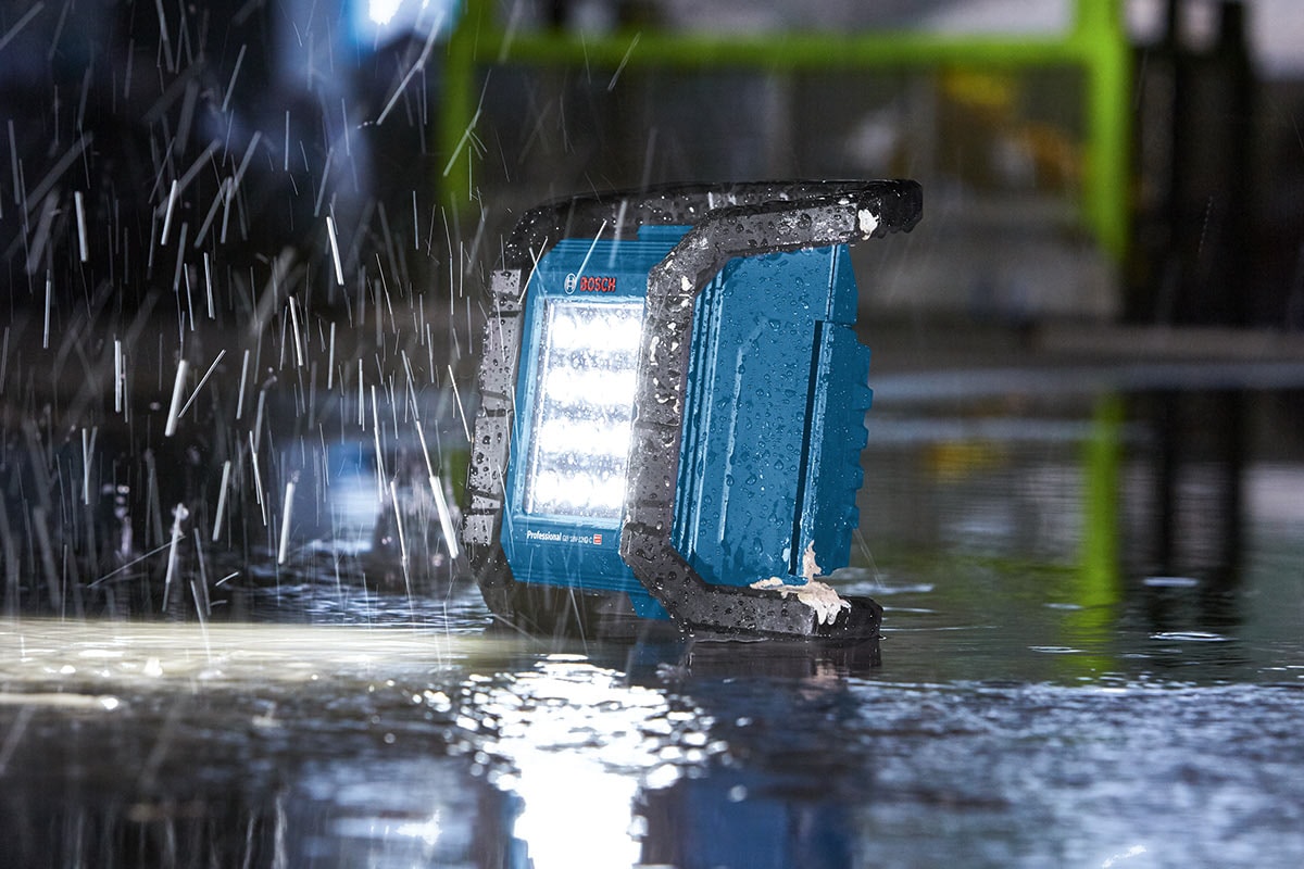 Denne projektør er velegnet til oplysning af hele arbejdsområdet en hel arbejdsdag. Den er kompatibel med alle Bosch Professional 18 V-batterier* (Professional 18V System).