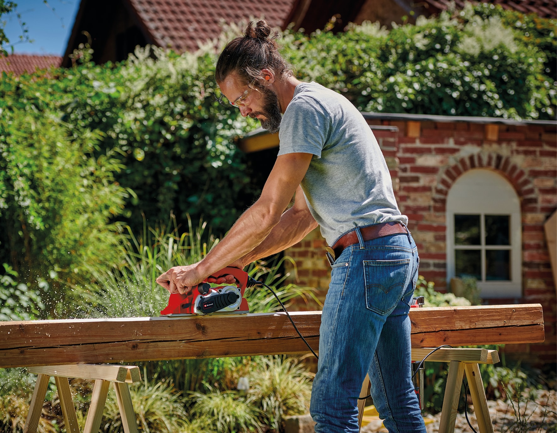 Elhøvlen leveres inklusive parallelstyr til lige og præcis høvling, dybdestop til nem høvling i flere niveauer samt en vendbar TCT-klinge, som giver en flot høvlet overflade.