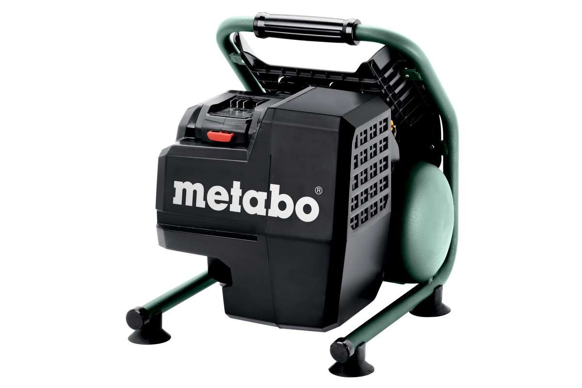 Du får her en let og effektiv akku-kompressor uden batteri og lader fra Metabo med kulfri motor til brug til indendørs indretning og på byggepladser.