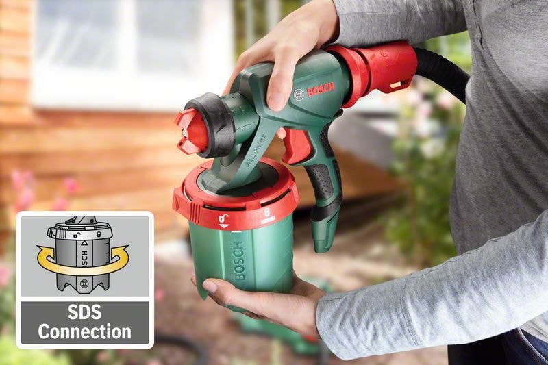 Det alsidige malersprøjtesystem PFS 3000-2 gør det nemt at sprøjte med alle typer maling takket være ALLPaint-teknologien. Gør-det-selv'eren kan frit vælge, om der skal sprøjtes med vægfarve, lak eller lasurmaling. Med det praktiske SDS-system kan man hurtigt efterfylde maling, og systemet er nemt at rengøre. ConstantFeed-malingsbeholderen på finsprøjtesystemet giver ensartet malingsforsyning, også ved opgaver over hovedhøjde eller tæt på gulvet.