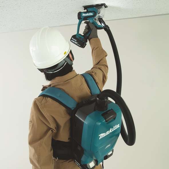 Let og praktisk gipssav til savning af åbninger i gipspladser for installation af lamper eller rørgennemføringer.Velegnet til bygge- og renoveringsprojekter. Justerbar skæredybde op til 15 mm. i træ og 30 mm i gips.Boks for støvopsamling. Leveres uden batteri og lader.