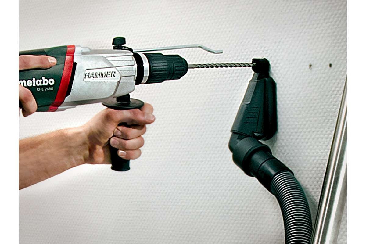 Støvsugeradapter til fjernelse af borestøv ved borehullet.