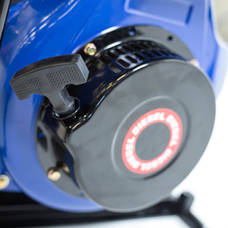 Synkrongenerator med batteriladestik 12V, voltmeter og overbelastningsbeskyttelse. Den store brændstoftank medfører en lang og kontinuerlig drift.