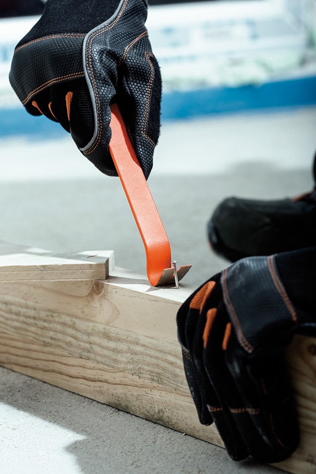 Et fladt koben fra Bahco med bøjet og flad ende. I den bøjet ende har det en kløft til sømudtrækning.