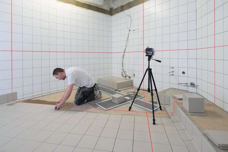 - 3 x 360° linjer muliggør samtidig vandret og lodret nivellering, hvilket øger effektiviteten af arbejdet