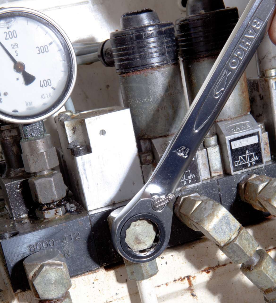 Bahco ring-skraldenøglerne har 5° arbejdsvinkel og er forsynet omskifter til hurtig ændring af højre og venstre omløb. Hver nøgle har tydelig dimensionsangivelse og er fremstillet i matforkromet, højtlegeret stål.