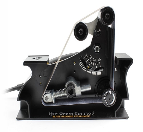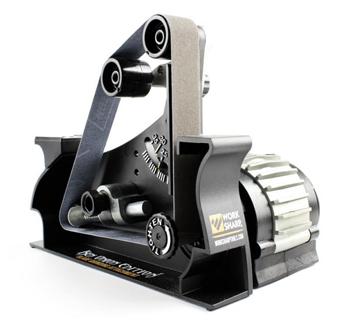 Båndslibeguide til Worksharp Ken Onion-sliber. Fuldt justerbar fra 10° til 35° (i trin på 1°) og bruger 1 "x 18" konstruerede slibebånd i en bred vifte af finhed.