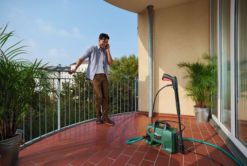 EasyAquatak 120 klarer rengøringen hurtigt og nemt. Denne kompakte højtryksrenser er nem at manøvrere med og opbevare med sit kompakte design og integreret opbevaring af tilbehør. Rengøring af biler, terrasser og havemøbler foretages nemt med en rensekraft på 120 bar og et udvalg af indstillelige viftedyser og rotationsdyser. Højtryksdysen på 450 ml til vaskemiddel reducerer rengøringstiden, da sæben hurtigt påføres. Trykkoblinger og opbevaring af pistolen under brug gør rengøringen nem.