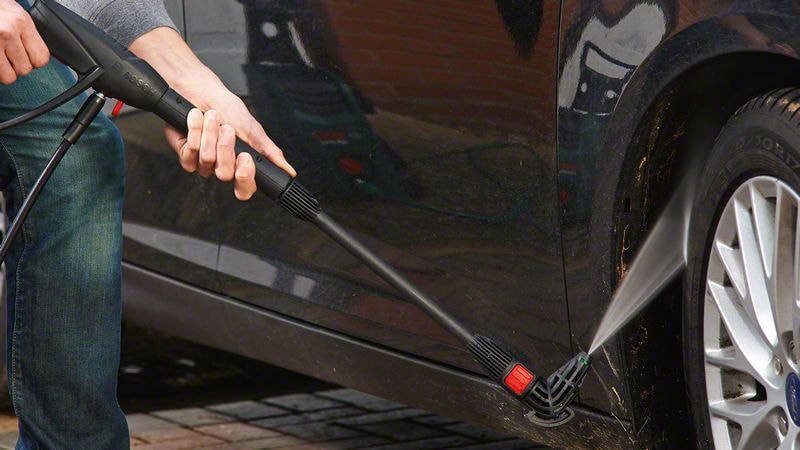 Når det gælder om at fjerne snavs fra tagrender, hjulkasser eller andre svært tilgængelige steder klarer 90°-dysen opgaven uden besvær. Dysen fastgøres nemt til lansen og leder vandet ind i svært tilgængelige områder som for eksempel trange rum eller i højden. Blade, snavs og andre aflejringer fjernes effektivt fra persienner, udestuer og tage. 90°-dysen giver en høj grad af arbejdskomfort og er en perfekt hjælp til en lang række krævende udendørsopgaver.