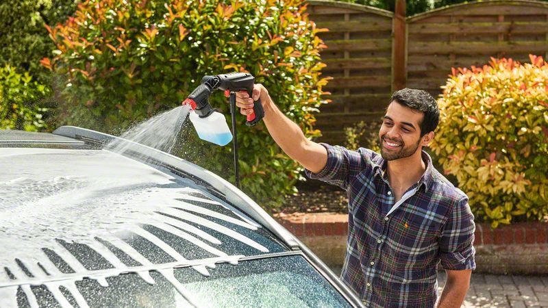 Tryk og klik for at slutte 360°-pistolen til højtryksrenseren, og få en praktisk renseløsning. Pistolen betjenes med én hånd, hvilket gør den ideel til rengøring af lettere genstande som for eksempel børnelegetøj. Til vanskeligt tilgængelige steder som for eksempel under vindueskarme sikrer den justerbare 360°-rotationsdyse, at vandet ledes hen, hvor der er brug for det. Den variable viftejetdyse leverer en kraftig vandstråle med en smal vifteindstilling til fjernelse af genstridigt snavs eller en blødere og bredere dyseindstilling til skånsom fjernelse af snavs fra en lang række forskellige overflader.