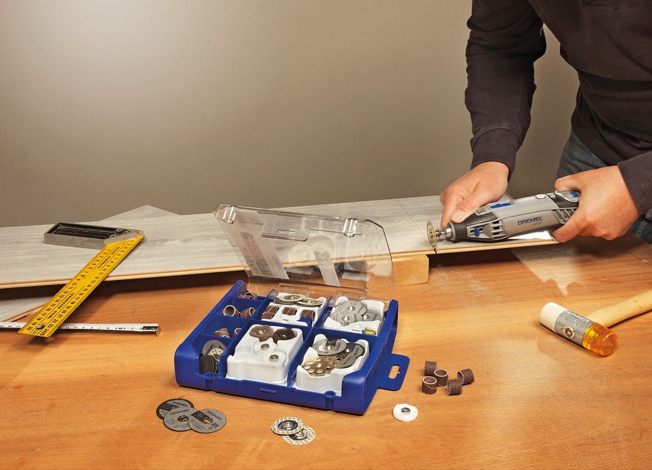 EZ Speedclic SC725 tilbehørssættet fra Dremel leveres i en praktisk opbevaringskasse.
