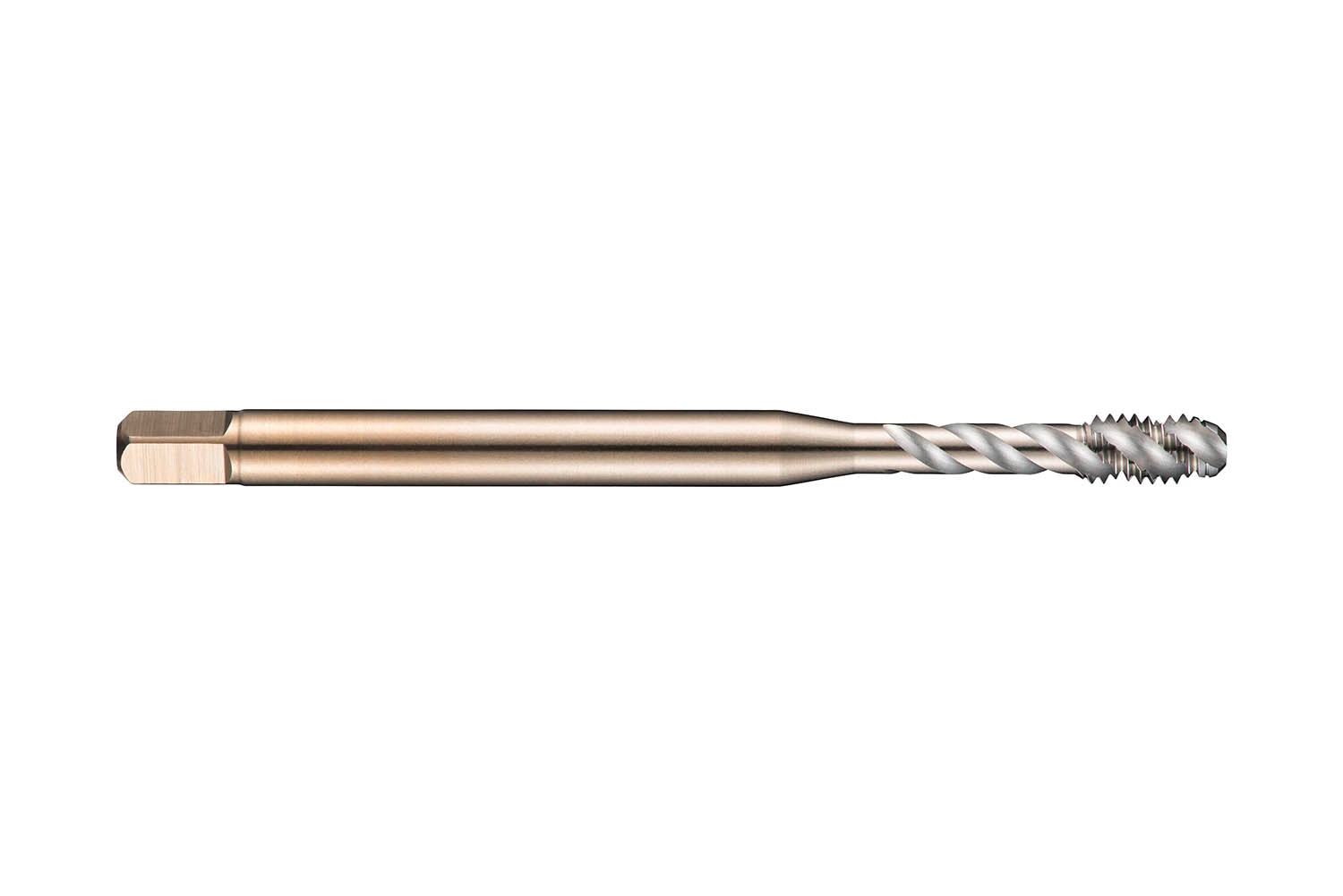 I overensstemmelse med DIN 376-standarden. Fremstillet af koboltbaseret pulverlakeret stål (HSS-E-PM) med blank overflade og 45° spiral til 2,5xD til bundhuller i konstruktionsstål og kulstofstål og rent aluminium, magnesium eller aluminiumslegering, Si>10% aluminium.