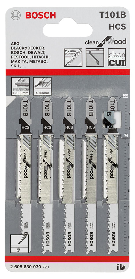Stiksavsklingerne giver rene og lige snit i blødt træ, spånplader, møbelplader og fiberplader med en tykkelse på 3-30 mm.