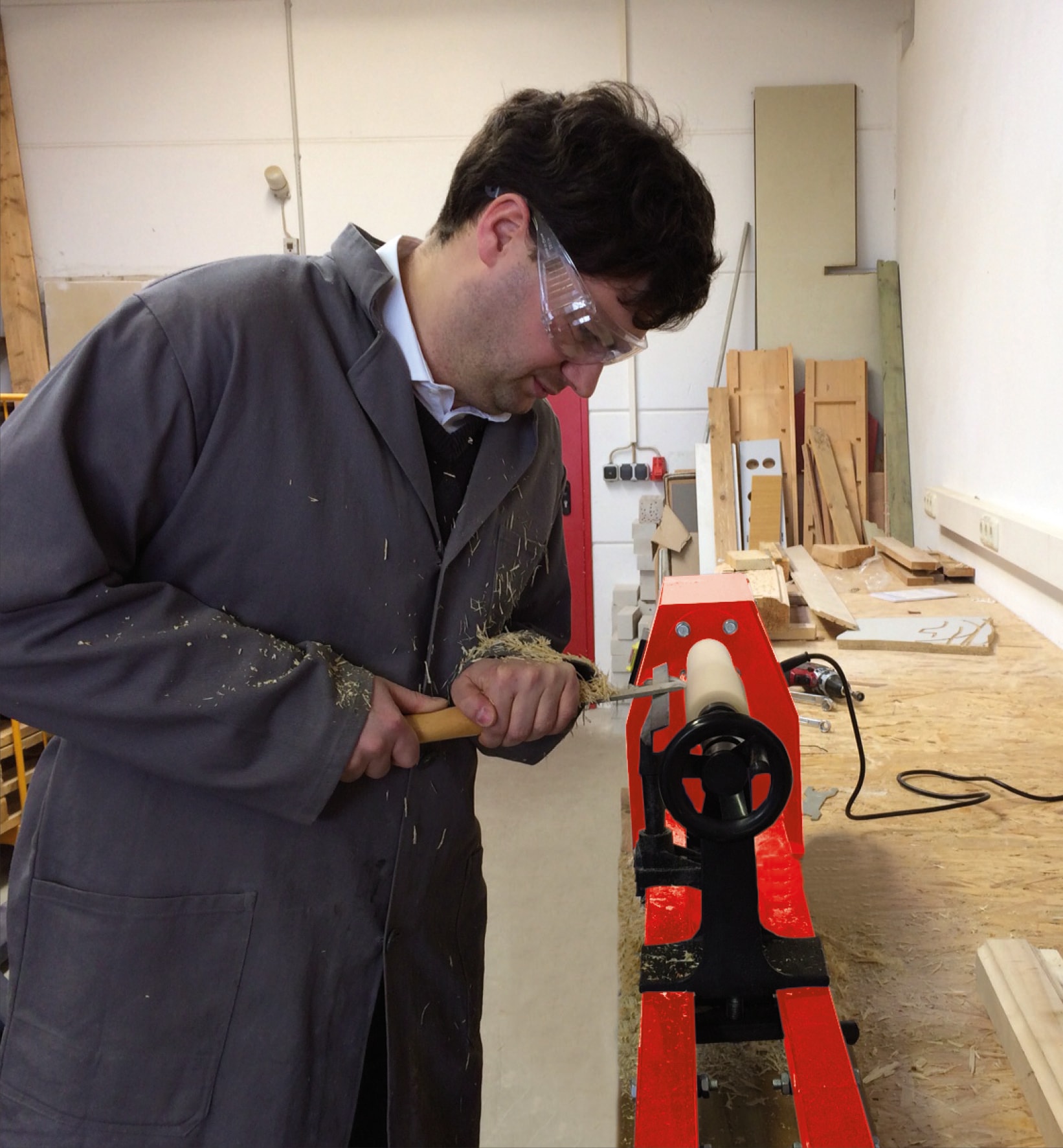 Den har en let justerbar støtte til drejejern, så arbejdsemnet kan drejes helt nøjagtigt. Pinoldokken med spindel er med til at holde arbejdsemnet godt fast. Dobbeltkonstruktionen betyder, at stellet er vridfast.