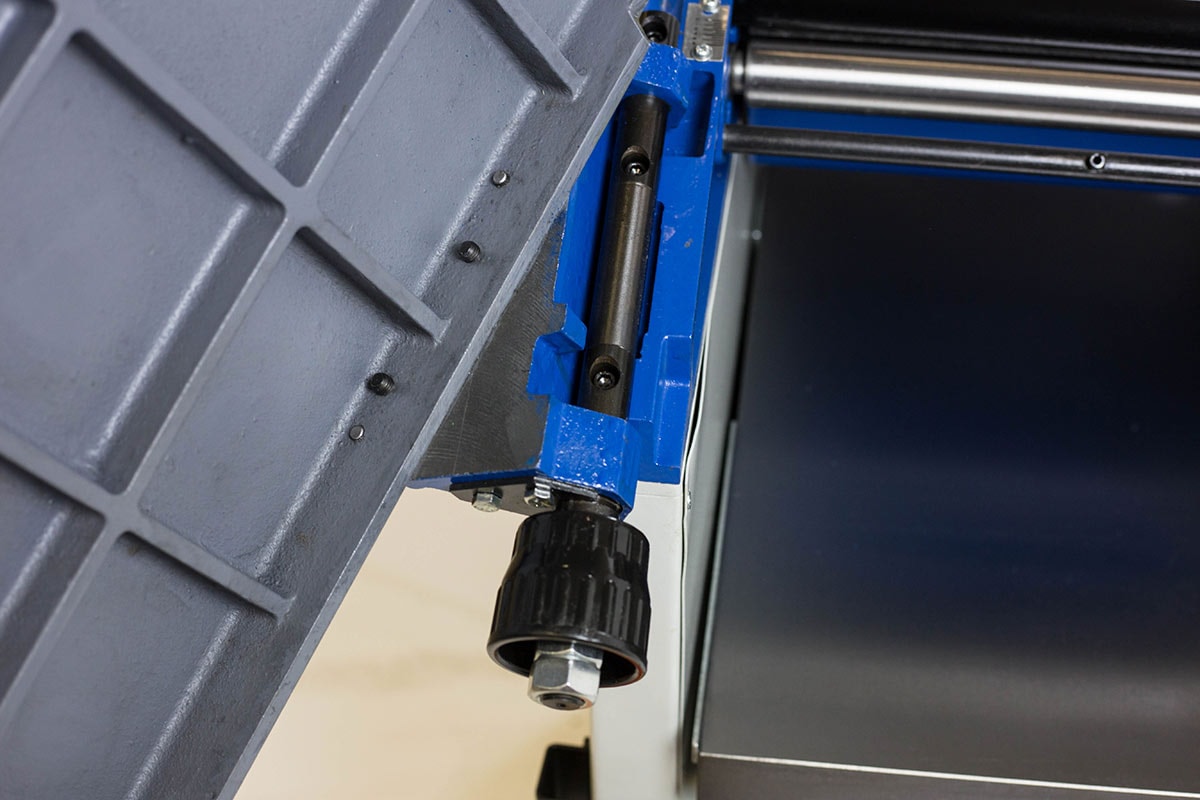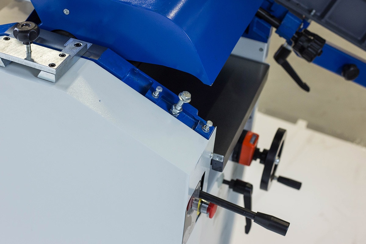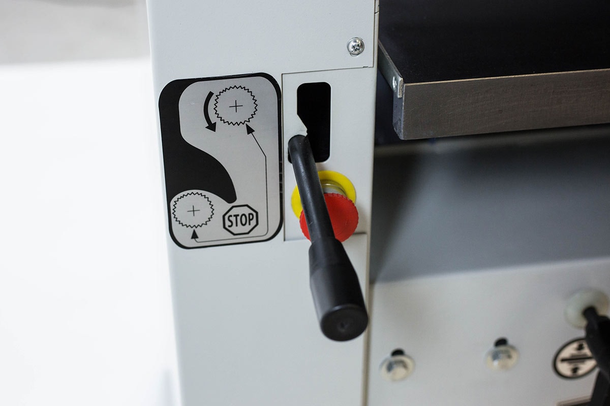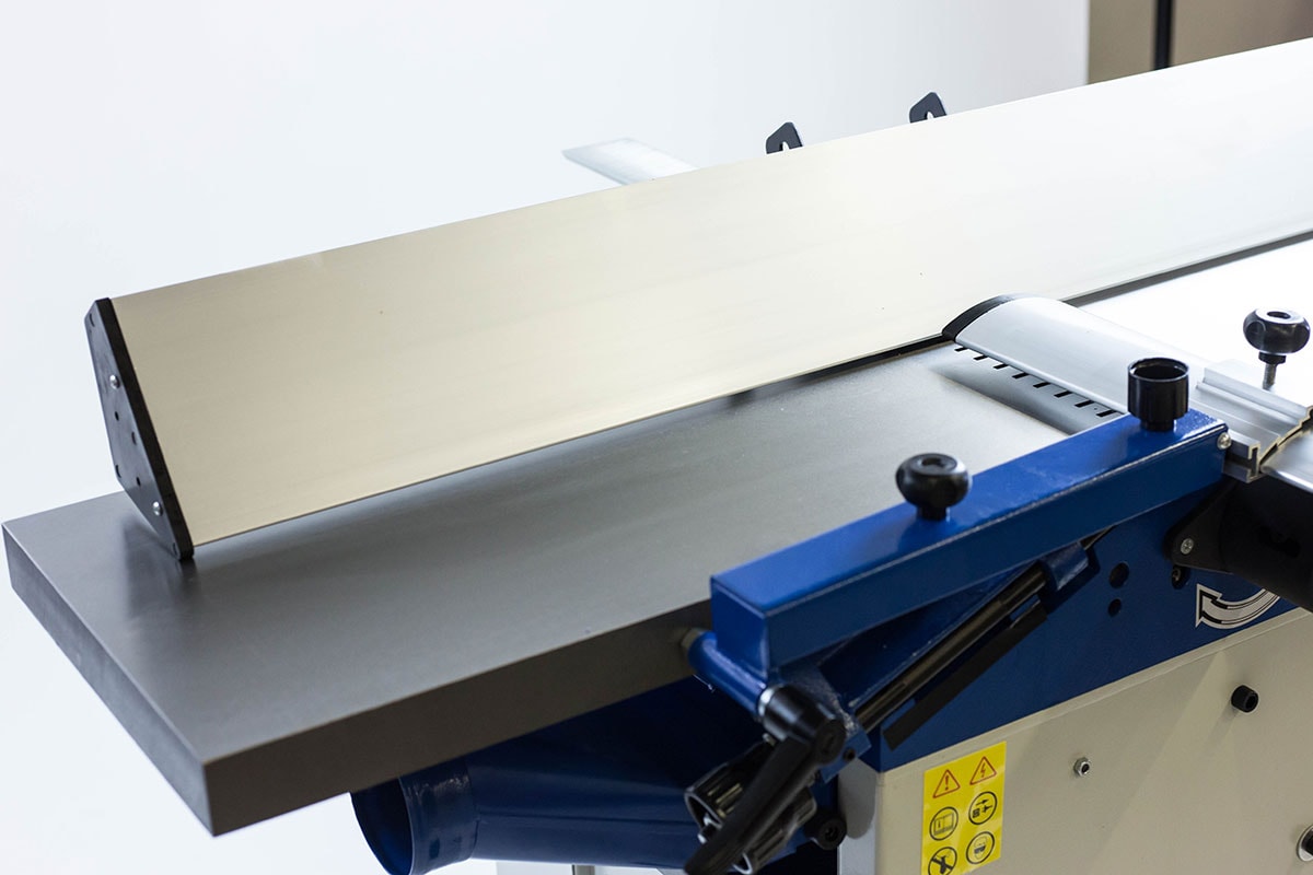 Kraftig afretter- og planhøvl med robust svejset stålstel og støbejernsbord. Maskinen har en trefaset elmotor på 3 hk til at klare tungt arbejde, fremføringsvalserne og udløbsvalsen er af stål. Høvlen leveres komplet med spånplader, stolpeværktøj til høvlstålet og digitale hænder af gulvhøjden. For at skifte fra afretter- til planhøvling fjernes begge borde for maksimal sikkerhed og overblik over emnet. Den solide fræser, som er 75 mm i diameter, er udstyret med 3 høvlstål for det bedste resultat. Stoppet kan vinkles fra 0° - 45° for at muliggøre de fleste høvlemomenter, der kan forekomme.