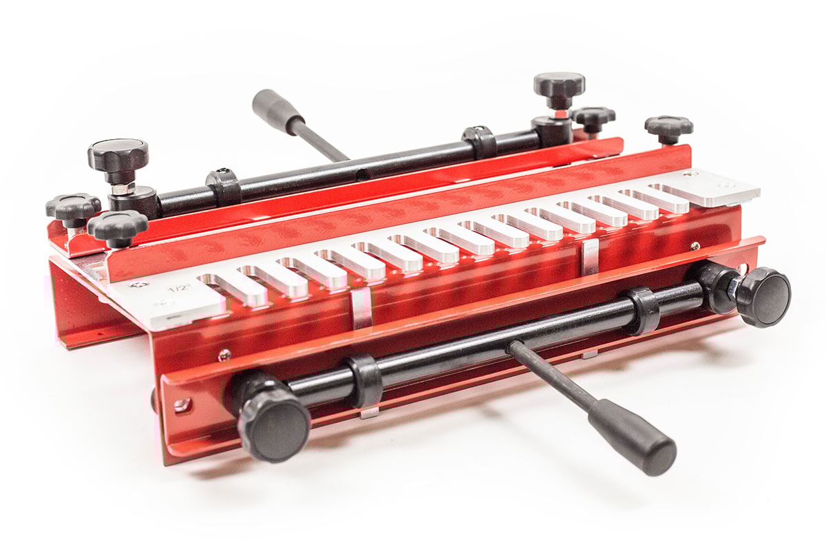 Robust zink-enhed lavet af stålplade med alu-plade til brug med håndfræser. Zink såvel som stift fræses i ét trin. Giver perfekt pasform ved fremstilling af skabe, skuffer og lignende. Arbejdsemner holdes på plads ved hjælp af en excenterlåsanordning.