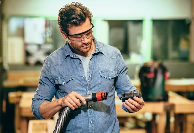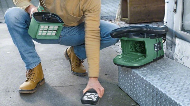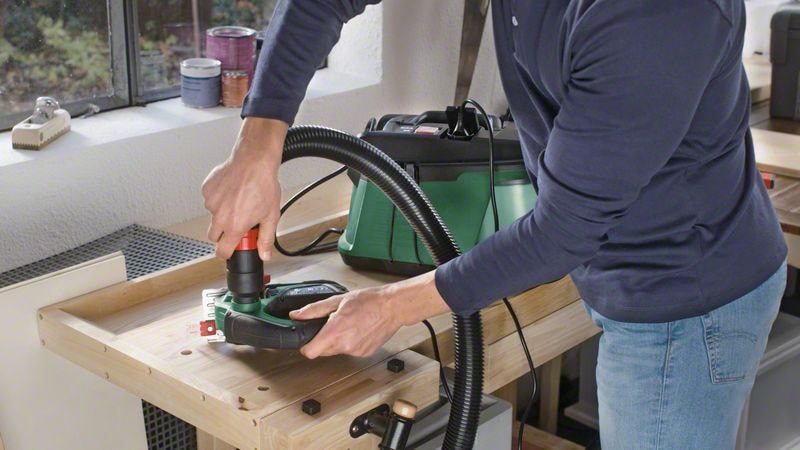Pladssparende opbevaring af støvsugeren takket være den bekvemme fastgørelse af slange og tilbehør|Alt det nødvendige tilbehør opbevares direkte på støvsugeren og er derfor altid nemt at få fat i under støvsugningen|Universaladapter letter direkte støvudsugning, når du arbejder med el-værktøj fra Bosch Home & Garden|Muliggør fleksibelt arbejde også på svært tilgængelige steder takket være den smalle fugedyse og 2,2 m lang slange|Ved at tilslutte el-værktøjet til støvsugeren opnår du, at støvsugeren tændes og slukkes automatisk sammen med el-værktøjet|Et omfattende sortiment af tilbehør er en hjælp ved mange forskellige anvendelser og støvsugning af forskellige materialer|Optimal containerstørrelse til arbejde med el-værktøj