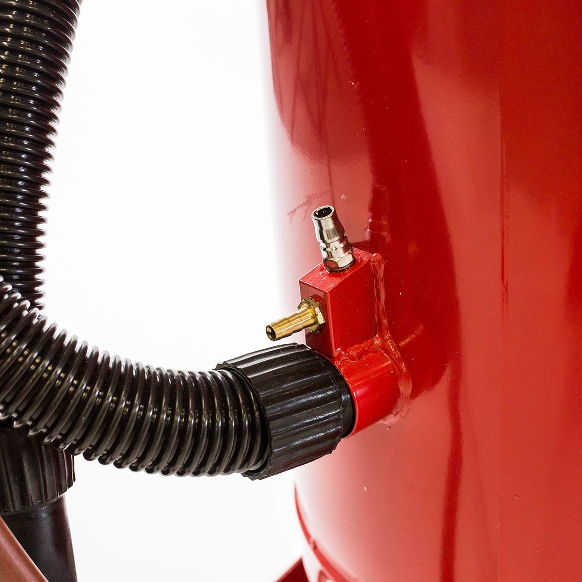 Blæseraggregat med indbygget sug til genbrug. Velegnet til mindre sprængningsarbejder både indendørs og udendørs.