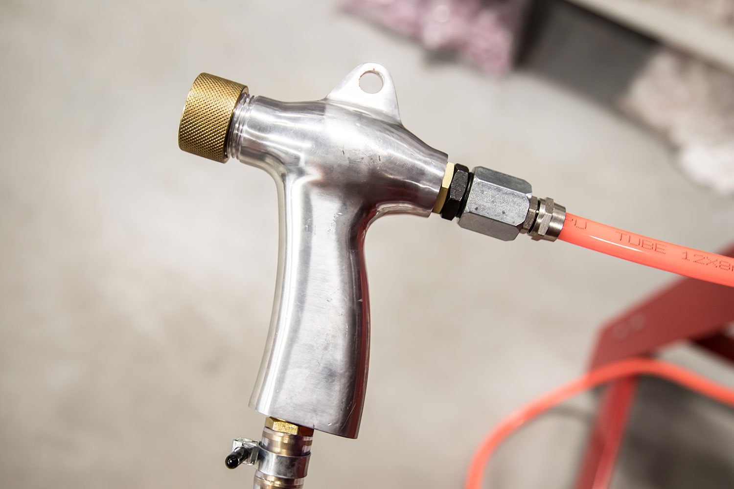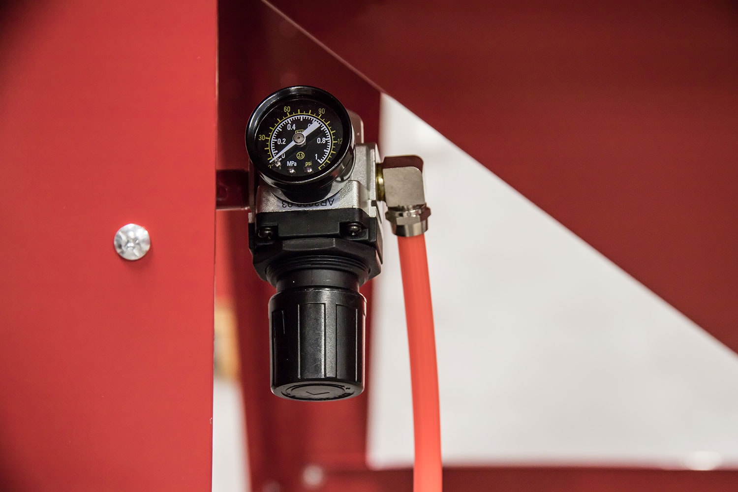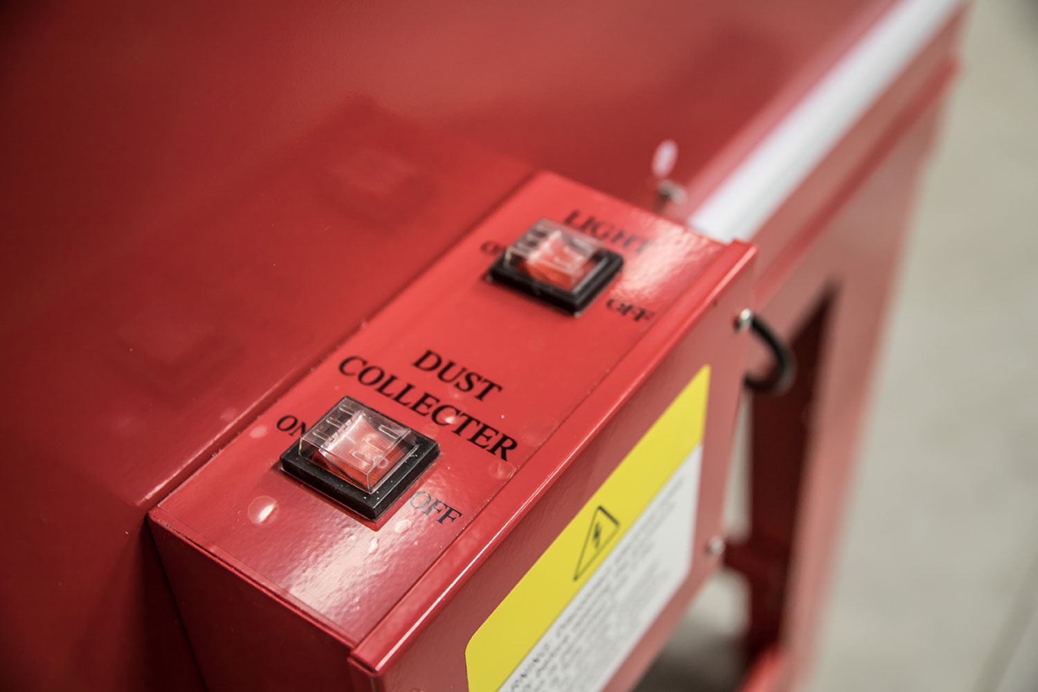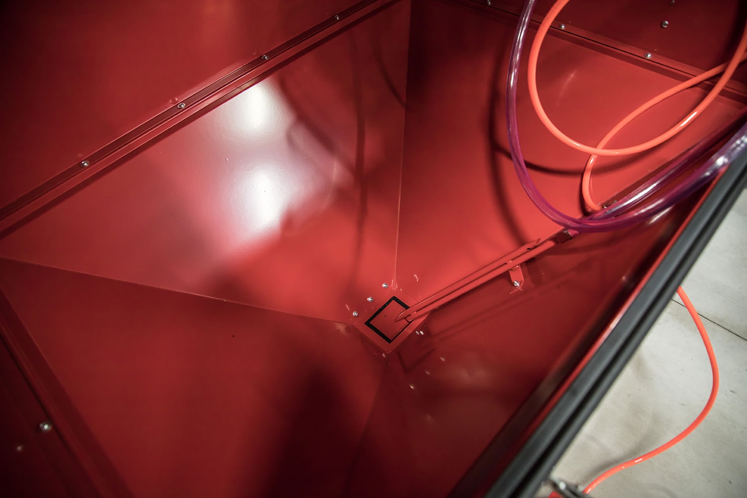 Leveres med udsugningsventilator med tilhørende partikelfilter, arbejdsbord, indvendig belysning, blæsepistol, støvtætte handsker, fodventil og reduktionsventil med manometer.