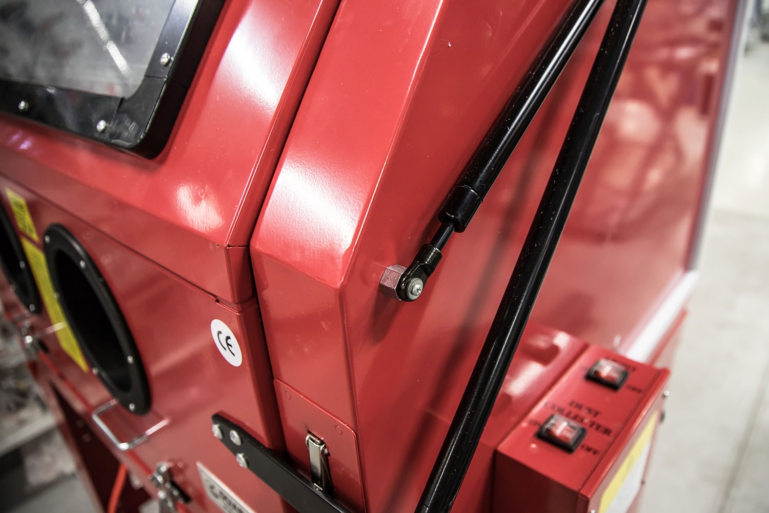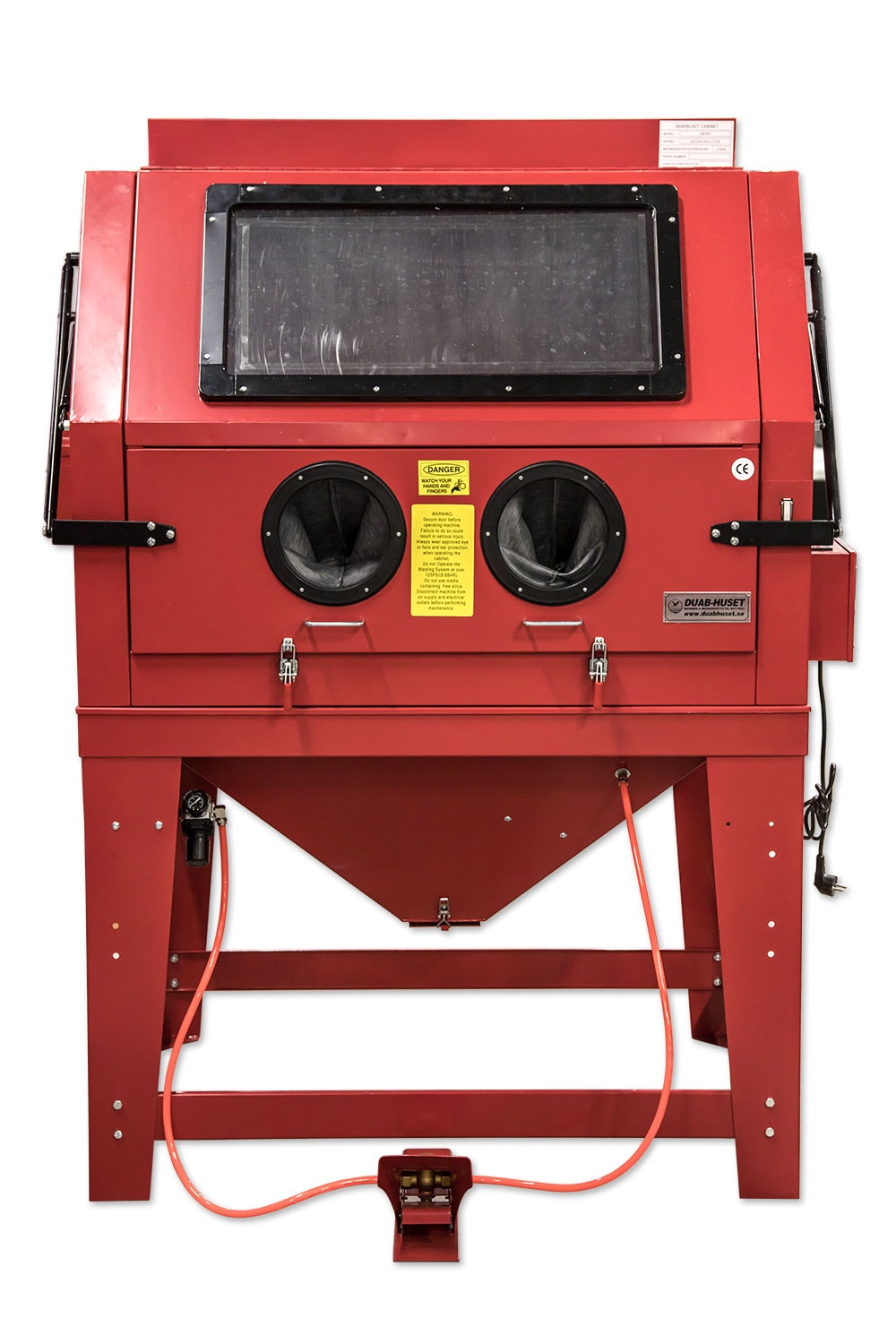 SBC 990 er et professionelt blæseskab med udsugning. Skabet har en stor fuldt oplukkelig hoveddør, der er udstyret med gasfjedre for mere komfortabel åbning og lukning samt et vindue af hærdet glas og beskyttelsesfilm til skuevinduet. Anbefalet kompressorstørrelse til dette blæseskab er fra 7,5 hk og opefter.