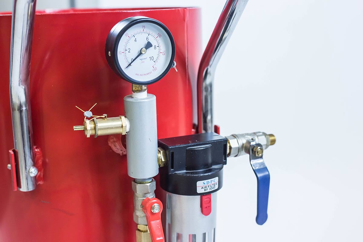 Leveres med godkendt blæsepistol med dødmandsgreb, blæsedyser, 2,5 meter slange, vandudskiller, trykmåler, beskyttelseskappe og hjulbeslag.