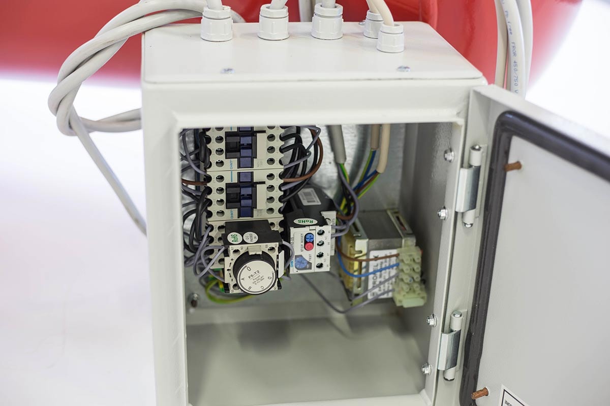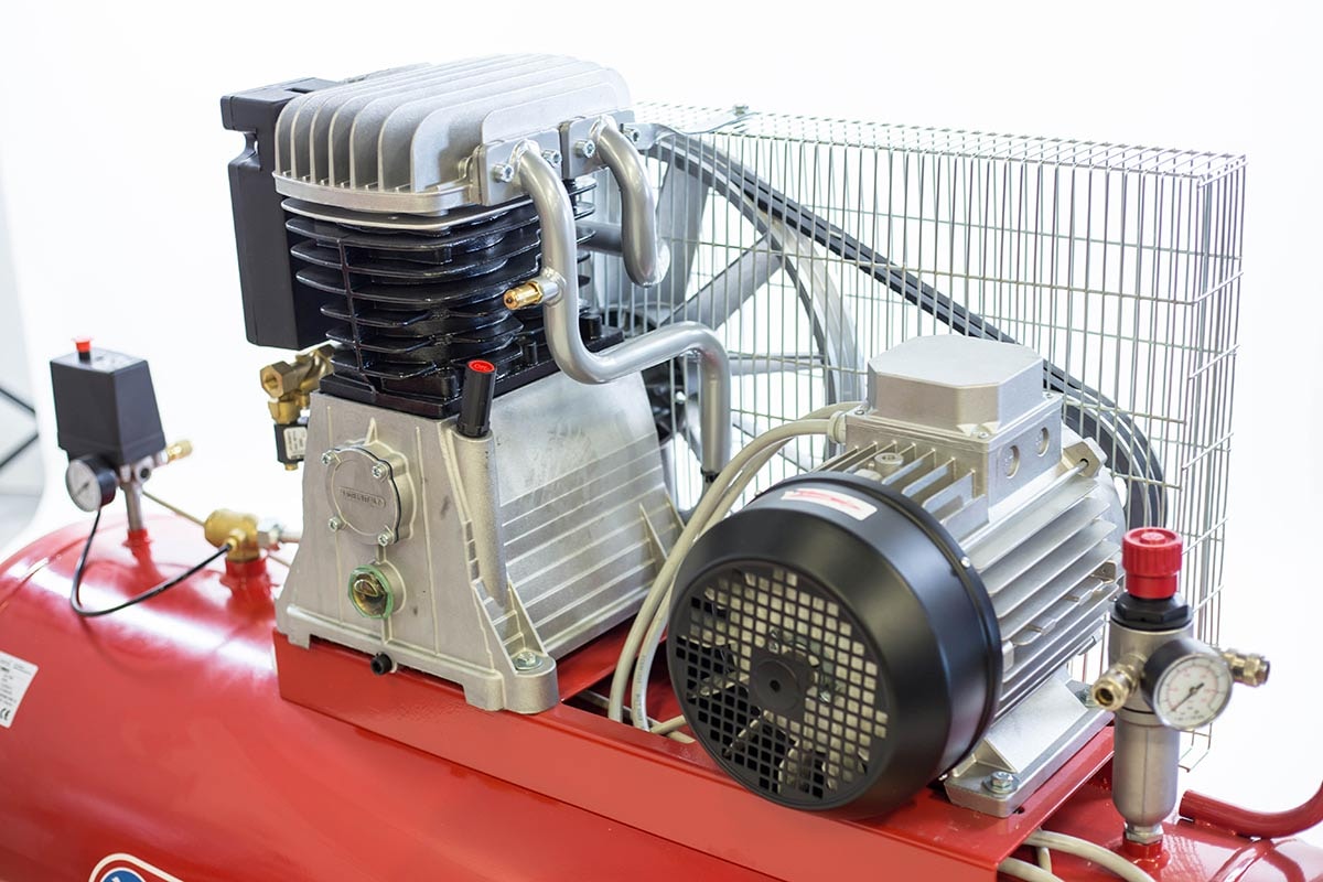 Drift-Air kompressor CT 7,5 / 900/270 udstyret med en to-trins kompressorblok, Newco NG6, med støbejernscylindere og mellem- og efterkøling. Kompressoren er udstyret med Y/D-start og komplet elskab, reducering, trykafbryder, motorværn og hjulsæt. Tre luftudtag, heraf to på reduceringsventilen og et på tankgavlen.