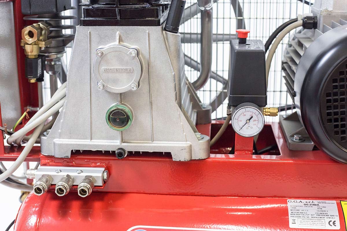 Dirft-Air E 700 Y/D er en lavhastighedskompressor til professionelt brug. Perfekt til facadearbejde og andre mobile aktiviteter. To-trins kompressorblok (Newco NG6) med støbejernscylindere og mellem- og efterkøling giver overlegen ydeevne og levetid. Reducering/vandudskiller, tågesmøreapparat, trykafbryder, Y/D-start og el-skab med indbygget motorværn. Pneumatiske gummihjul og håndtag gør den nem at flytte.