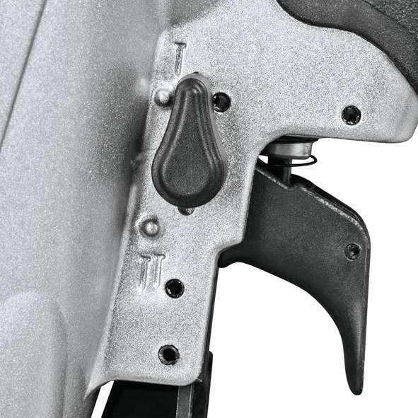 Spikpistol för rakbandad spik, 21° med D-huvud. Rakbandad spikpistol med djupjustering, tilluftsfilter och gummihandtag för bästa grepp. Spiklängd mellan 5090 mm. Går att välja mellan singel- eller serieskott.