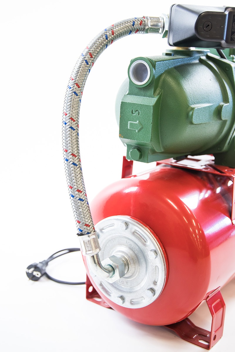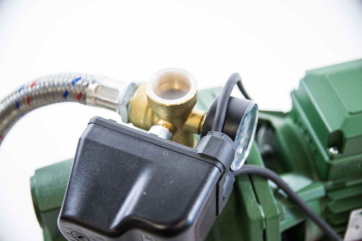 Pumpen kan tåle kontinuerlig drift og lang sugeledning, hvilket også gør den velegnet til kunstvanding. Leveres komplet med tank, pressostat, manometer og strømkabel.