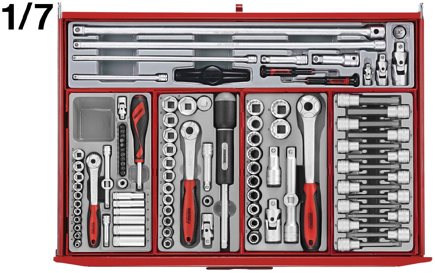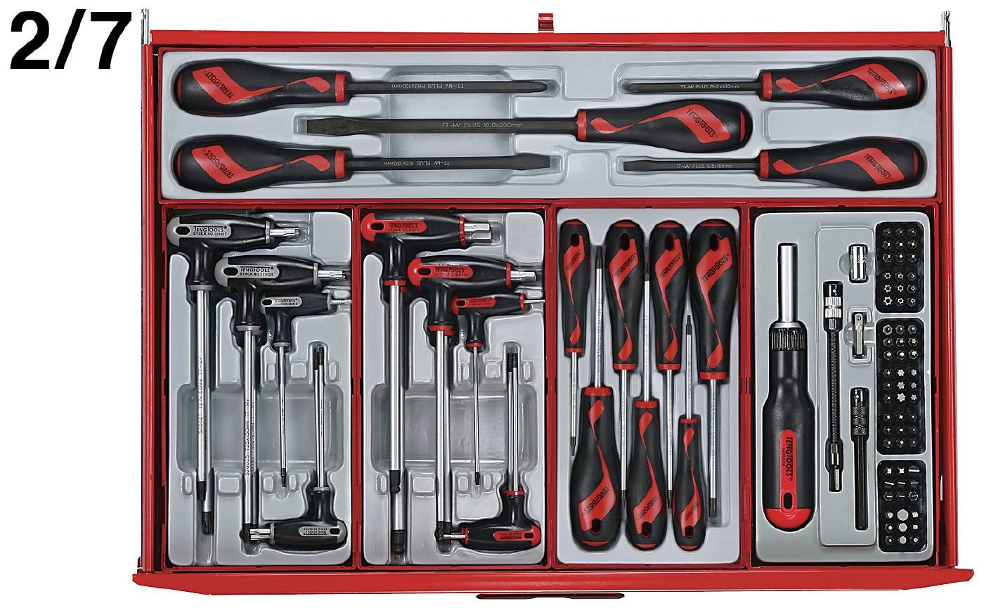 Teng Tools TCMM545N er et komplet industriværktøjssæt med 569 dele. Værktøjet leveres i en lækker værktøjsvogn med panel til ophæng af værktøj.